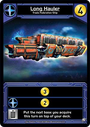 The Trade Federation invests it’s vast wealth in rapid technological advances. The Long Hauler will help your own fleet prosper. Find it in Frontiers.