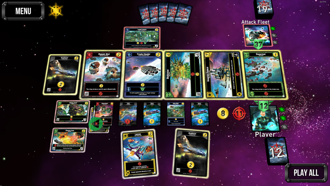 Previously, when a card’s cost was decreased (through a gambit or through a scenario rule in the Star Realms Arena), that decrease was not displayed in the app. You just had to know. Now, the decrease is properly displayed while the card is in the trade row. (Once the card leaves the trade row, it reverts to its normal cost.)
